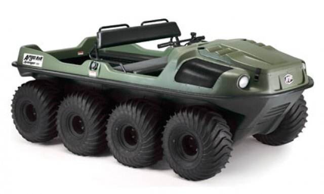 One-piece ergonomic handlebar steering control with mounted brake lever. For safety and ease of handling, the ARGO steering transmission provides continuous torque to all axles.