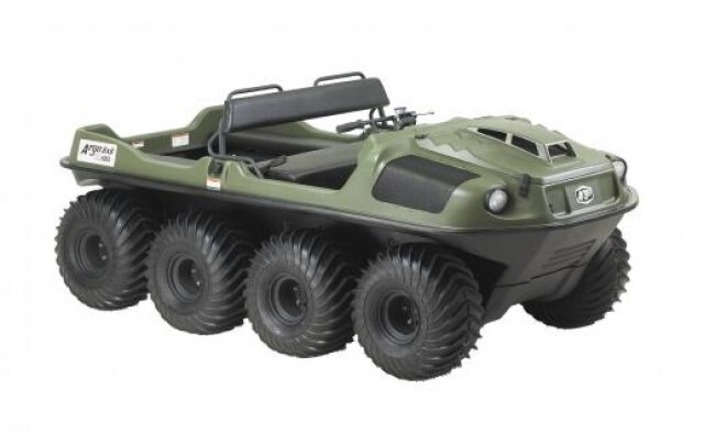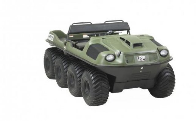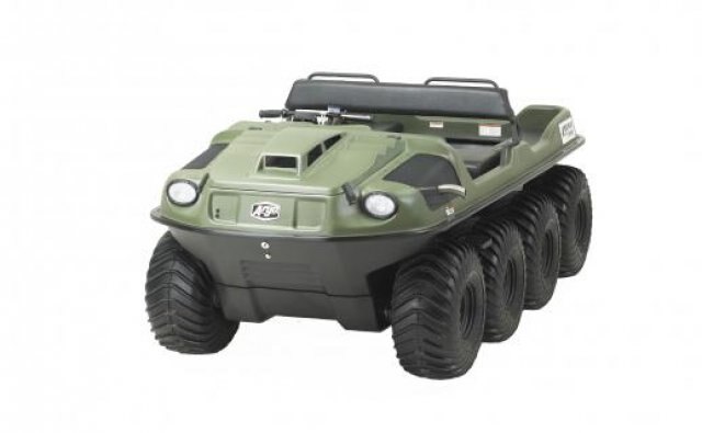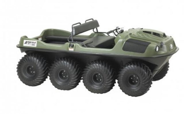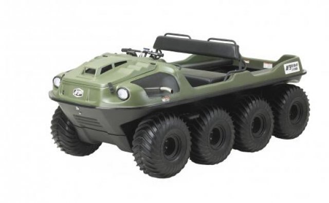 This 8-wheel drive amphibious off-road vehicle is powered by a 4-stroke OHV V-Twin liquid cooled 748cc, 30 hp (22 kW) Kohler Aegis LH 775 engine with electronic fuel injection. It has a load capacity of up to 1150 lb. / 521 kg on land or 1000 lb. / 454 kg on water, can transport 6 passengers on land, 4 on water and features towing capacity of 1800 lb. / 816 kg.