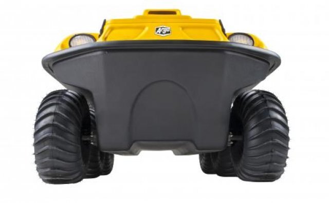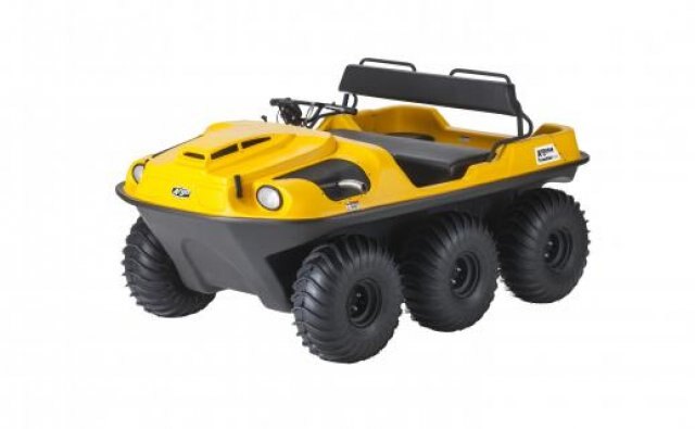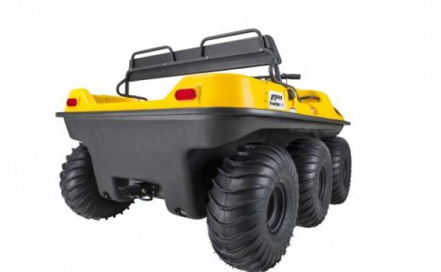 This 6-wheel drive amphibious off-road vehicle is powered by a 4-stroke OHV V-Twin air cooled 570cc, 18 hp (13 kW) Briggs & Stratton engine. It has a load capacity of up to 700 lb. / 317 kg on land or 500 lb. / 227 kg on water, can transport 4 passengers on land, 2 on water and features a towing capacity of 1,400 lb. / 635 kg Rear seat weight restriction of 140 lb. / 63 kg applies.