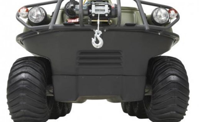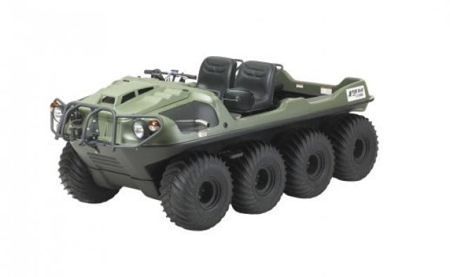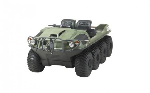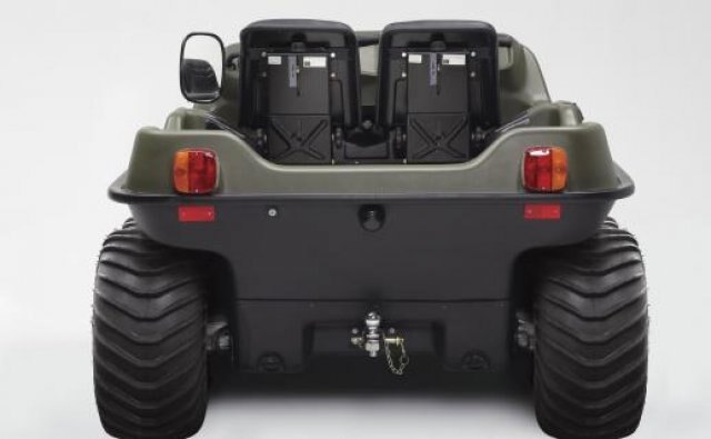 This 8-wheel drive amphibious off-road vehicle is powered by a 4-stroke OHV V-Twin liquid cooled 674cc, 24 hp (17 kW) Kohler Aegis LH 690 engine. It has a load capacity of up to 1000 lb. / 454 kg on land or 850 lb. / 386 kg on water, can transport 2 passengers on land/water and features towing capacity of 1,800 lb. / 816 kg.  European Union Road Approved.