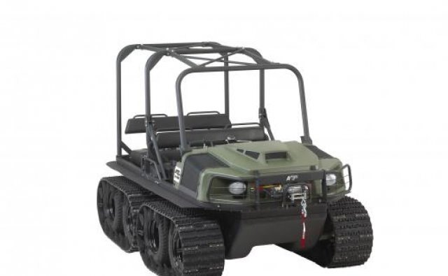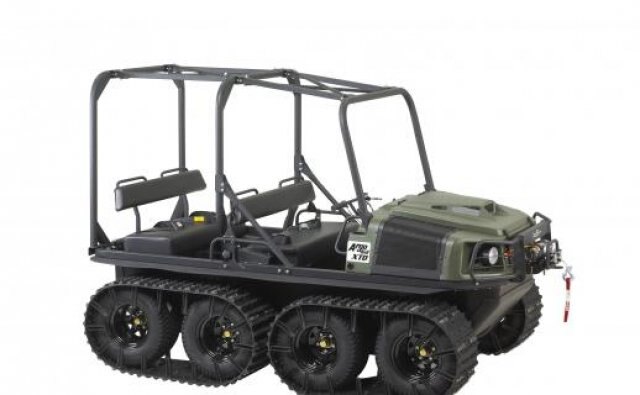 This 8-wheel-drive amphibious off-road vehicle is powered by a 1028 cc (62.7 cu. In.) liquid-cooled, 3 cylinder Kohler Lombardini naturally aspirated diesel engine. The engine provides 24 hp (17.6 kW) and 36.9 lbs ft of torque to the ADMIRAL two-speed transmission. It has a load capacity of up to 1,340 lb. / 608 kg on land or 840 lb. / 381 kg on water. Can transport up to 4 passengers on land and 2 on water and features a towing capacity of 2,000 lb. / 907 kg.