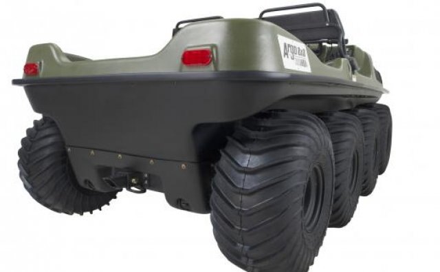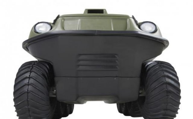 This 8-wheel drive amphibious off-road vehicle is powered by a 4-stroke OHV V-Twin liquid cooled 674cc, 24 hp (17 kW) Kohler Aegis LH 690 engine. It has a load capacity of up to 1150 lb. / 522 kg on land or 1000 lb. / 454 kg on water, can transport 6 passengers on land, 4 on water and features towing capacity of 1,800 lb. / 816 kg.