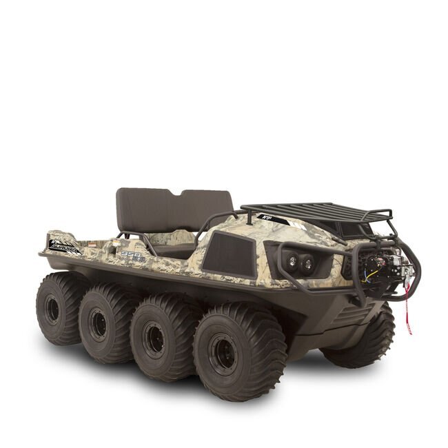 New and stylish AirLock™ rims. These new aluminum and steel ground warriors allow operators to adjust tire pressure to the terrain. The AirLock™ feature keeps the tire firmly fixed to the rim in rugged terrain while providing a 30% smoother ride. ARGO low-pressure tires are custom engineered to provide propulsion for the vehicle when used amphibiously or to provide superior traction when off-roading in challenging terrain. |