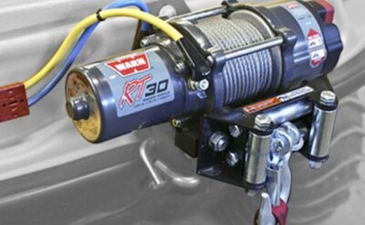Power Winch 3000 lbs.(1364 kg) capacity, reversing with free wheeling out, 40 ft.(12 m) steel cable with 30 ft.(9 m) nylon strap. Convenient ‘quick...