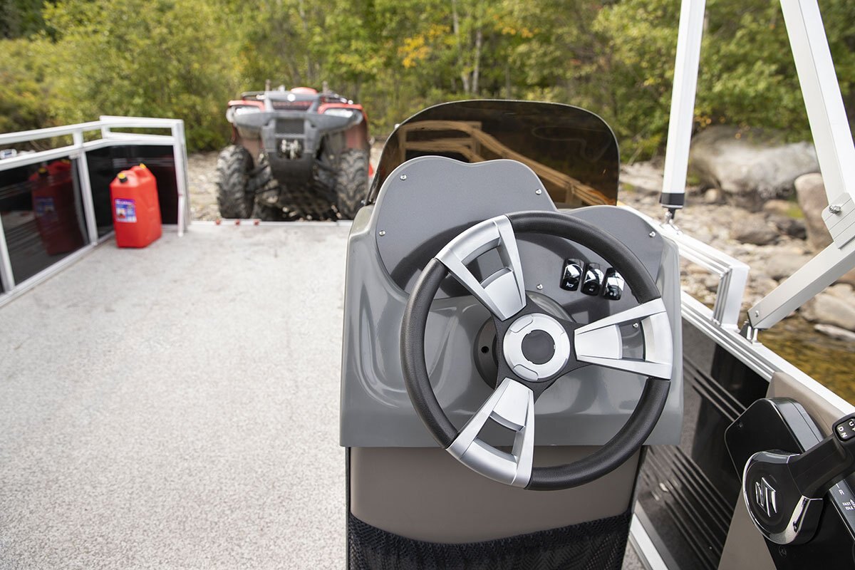 The Excursion is our transport pontoon that will assist you with your toughest jobs. It offers a large loading capacity and plenty of space. Just picture it with your ATV and building supplies!