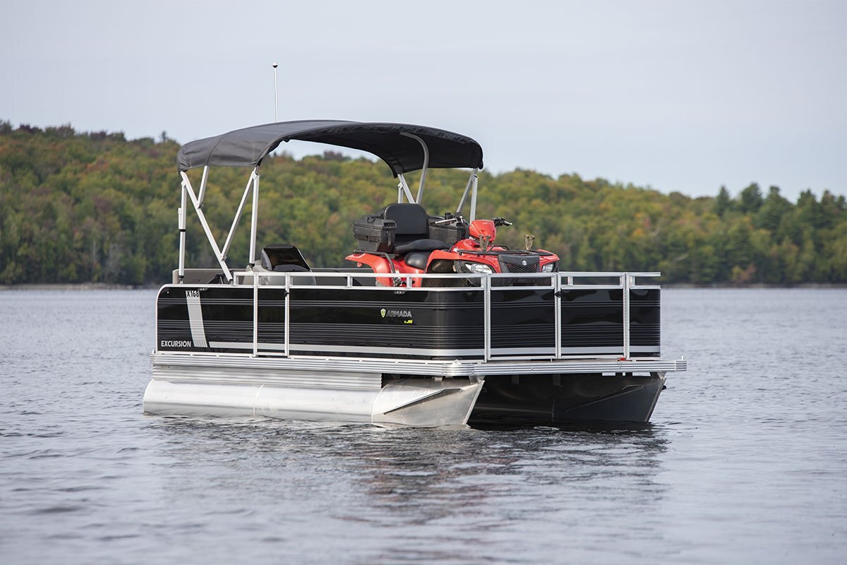 The Excursion is our transport pontoon that will assist you with your toughest jobs. It offers a large loading capacity and plenty of space. Just picture it with your ATV and building supplies!