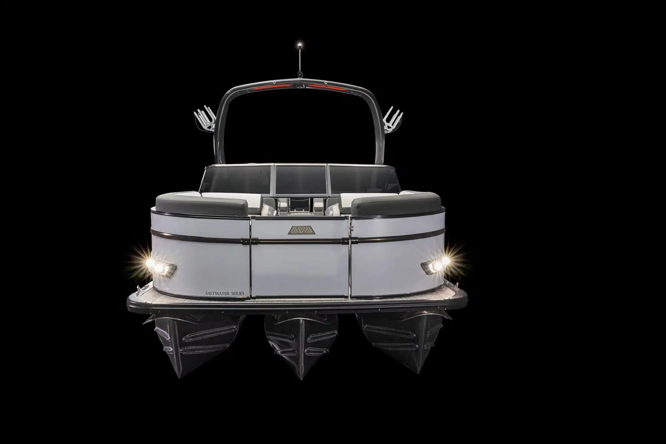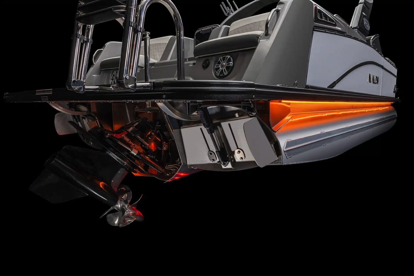Premium sound package: Fusion RA-770 radio, (6) Fusion SG RGB-lighted speakers & grills, Fusion 6-channel amp, Fusion D mono block digital amp, 10” Fusion Subwoofer, USB audio input & charge