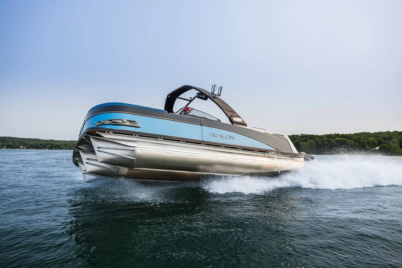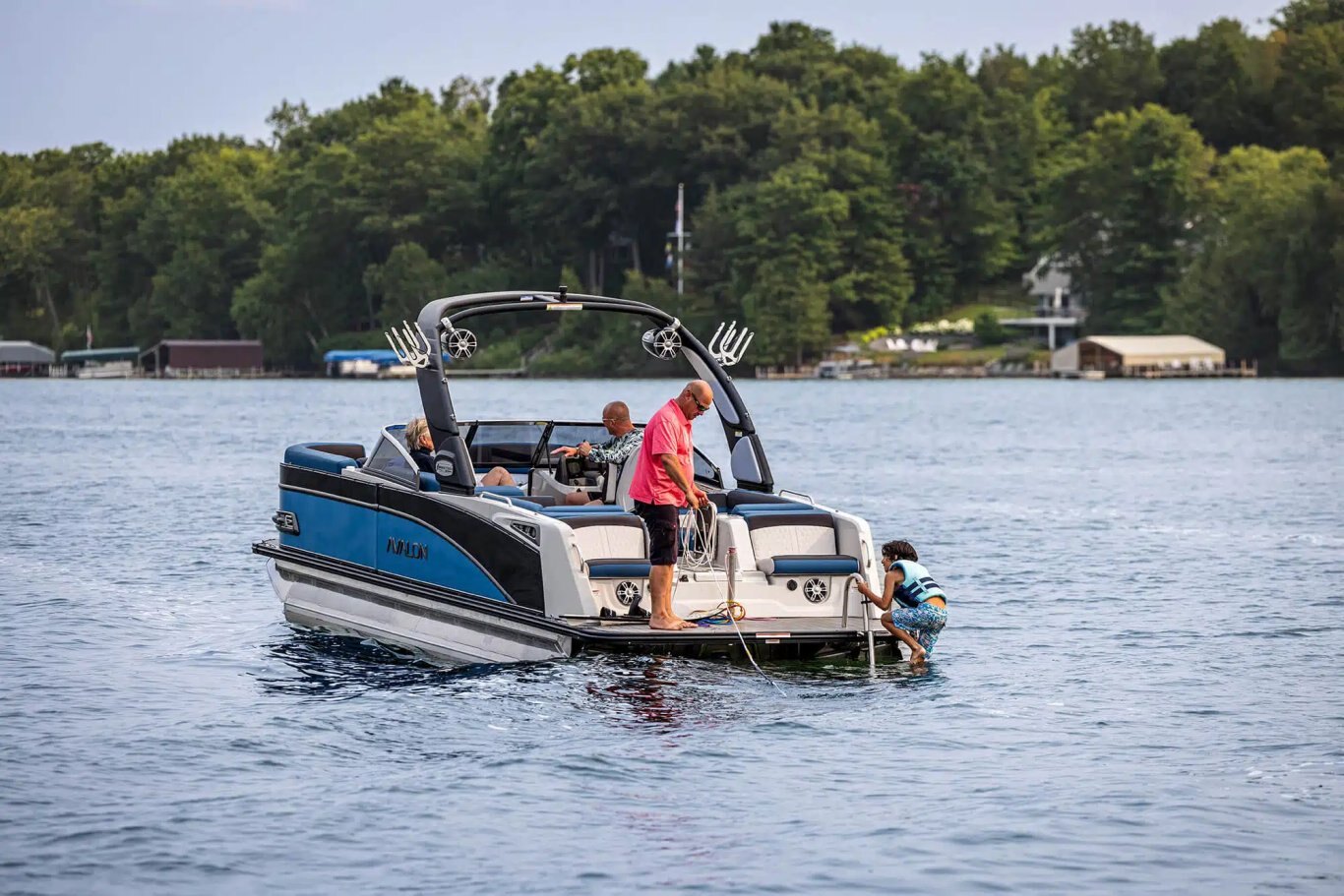Xtreme electric sport tower with RGB tower lights, bimini top & wakeboard racks