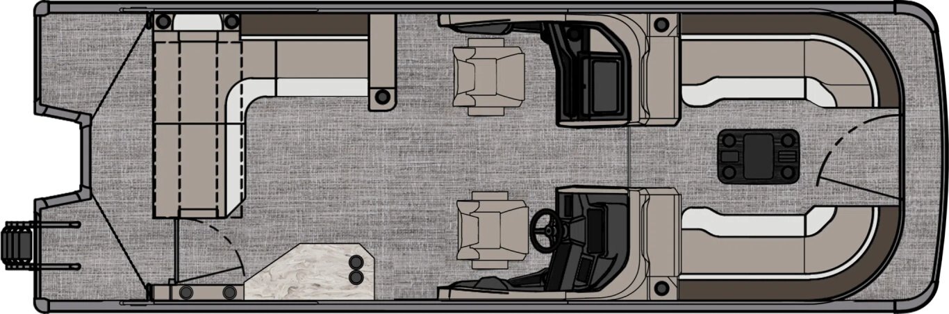 Commander’s mid back reclining driver’s chair with color-matched accents Admiral high back reclining driver’s chair with flip-up bolster & color-matched accents(CRBW, ELW, QLSW, QLW) Chair adjustment slider, front, back, rotate 4000 Series furniture with Leon seat vinyl & heat stamp accents Suspension seating Upper deck furniture – includes backs, arms, sun pads, rear console with 2 speakers on the upper deck (CRFS, ENTFS) Lounge arms with storage (based on floorplans) Privacy station curtain & frame (N/A on CRBW, QLSW & QLW) Interior composite wall panels (except RF) Deluxe seat frame cladding Lifetime aluminum seat frames with flow-through ventilation Full Riptide vinyl flooring 2 moveable cupholders Stainless steel cup holders Greywood heavy duty thermoform table with large cup holders, recessed tray & phone storage (large kidney or rectangle) USB charging port Vinyl non-skid strips for entry gates Battery Selector Switch Manual – on/off/1/2/both (ELW, QLSW, QLW) Battery dual smart switch system (CRFS, ENTFS)