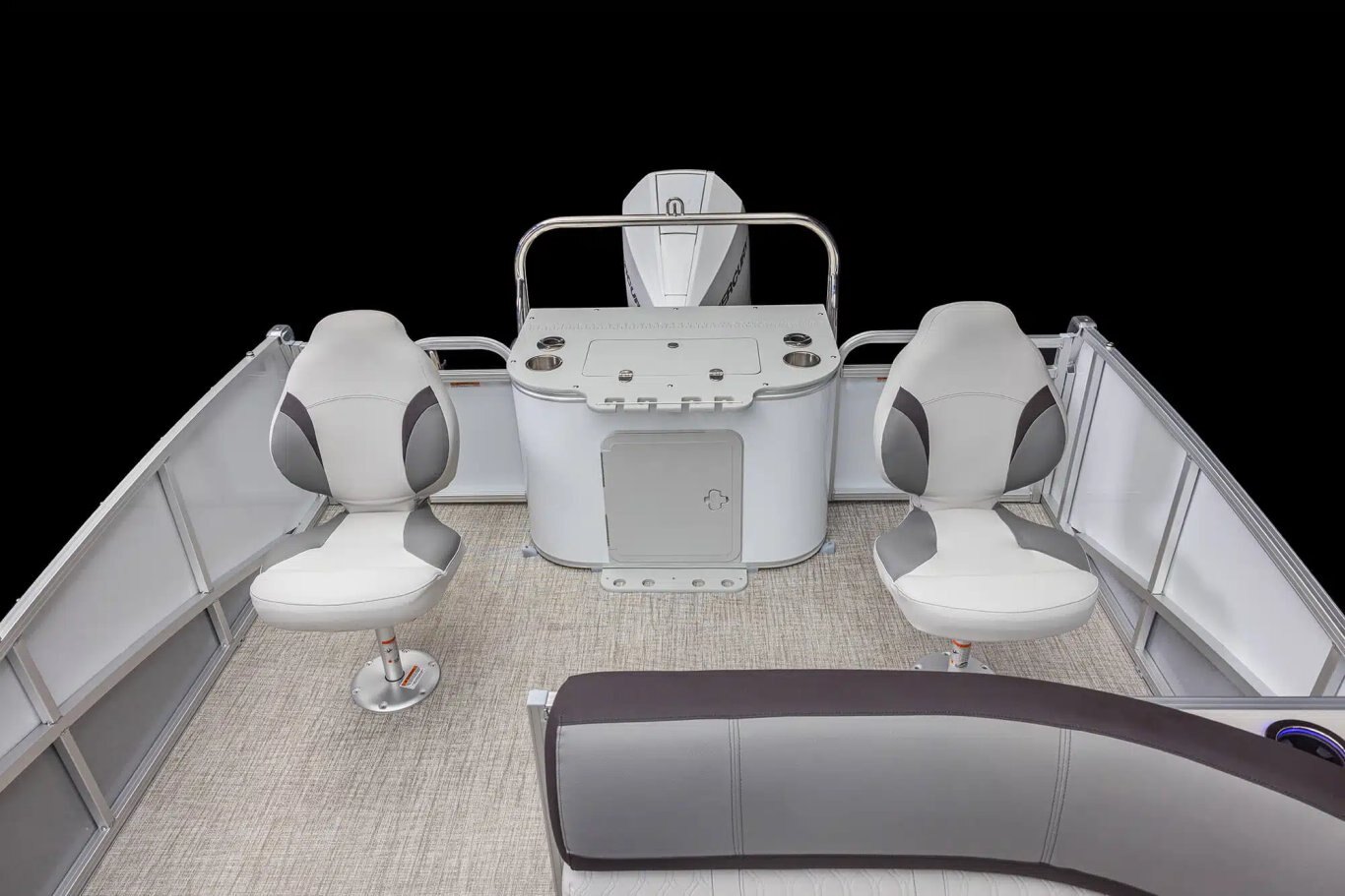 Fishing chairs with locking seat bases Garmin 72SV GPS/color fishfinder/depth finder Rear fishing center with 2 fishing chairs, rod holders & livewell Tackle trays with rear sink & access door