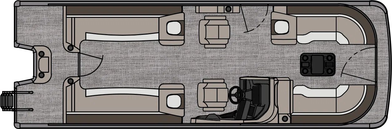 Commander’s mid back reclining driver’s chair with color-matched accents Admiral high back reclining driver’s chair with flip-up bolster & color-matched accents(CRBW, ELW, QLSW, QLW) Chair adjustment slider, front, back, rotate 4000 Series furniture with Leon seat vinyl & heat stamp accents Suspension seating Upper deck furniture – includes backs, arms, sun pads, rear console with 2 speakers on the upper deck (CRFS, ENTFS) Lounge arms with storage (based on floorplans) Privacy station curtain & frame (N/A on CRBW, QLSW & QLW) Interior composite wall panels (except RF) Deluxe seat frame cladding Lifetime aluminum seat frames with flow-through ventilation Full Riptide vinyl flooring 2 moveable cupholders Stainless steel cup holders Greywood heavy duty thermoform table with large cup holders, recessed tray & phone storage (large kidney or rectangle) USB charging port Vinyl non-skid strips for entry gates Battery Selector Switch Manual – on/off/1/2/both (ELW, QLSW, QLW) Battery dual smart switch system (CRFS, ENTFS)