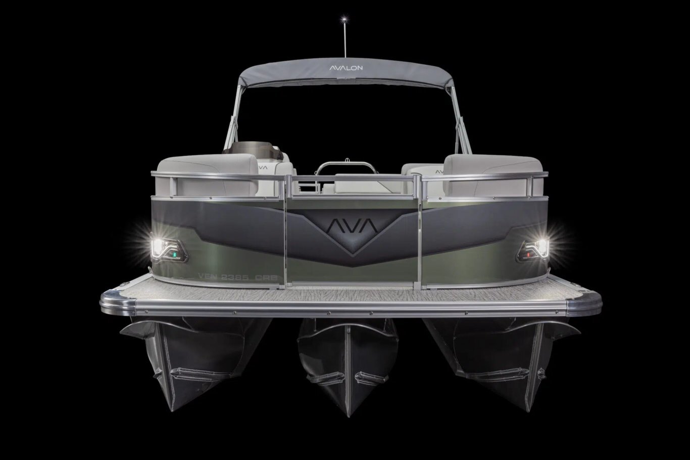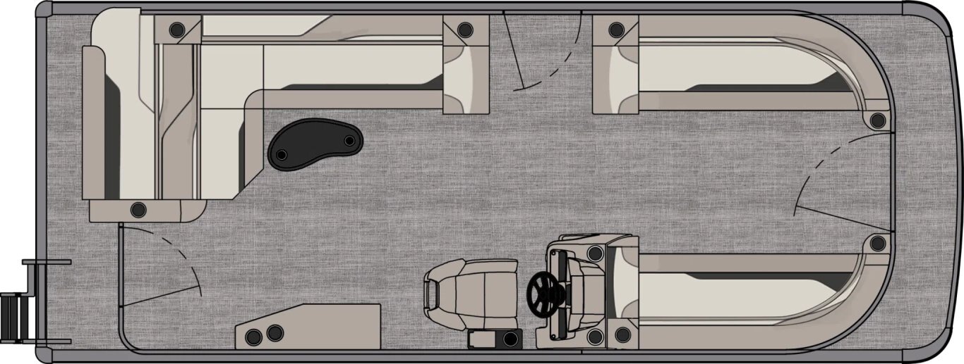 (2) 25” diameter pontoons Sport Performance triple 25” pontoons w/ 4 high performance lifting fins, ski tow bar & aluminum waveshield (CCF) 3” rub rail with black vinyl insert Deck corner impact protection – aluminum Tapered front deck Extended rear deck (CCF, RF) Pontoon double full risers (4) stainless U-bolt & cleat combo