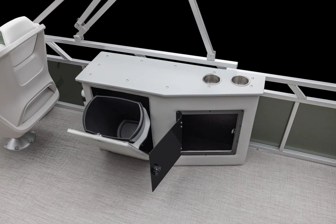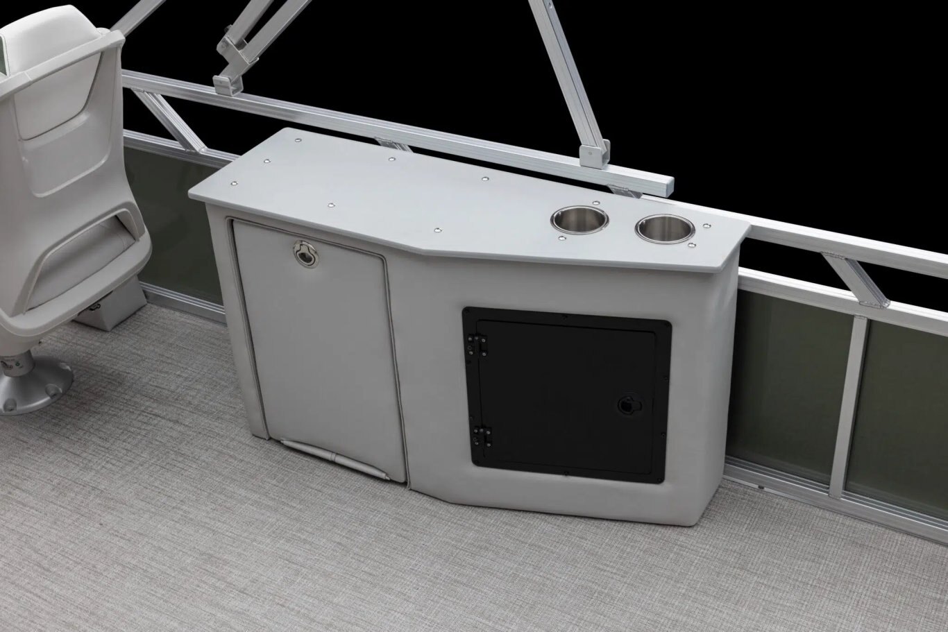 Fishing chairs with locking seat bases Garmin 52CV color fishfinder/depth finder (CCF) Rear fishing center with rod holders & livewell (CCF, RF) Rod box (CCF) Tackle trays with rear sink & access door (CCF)