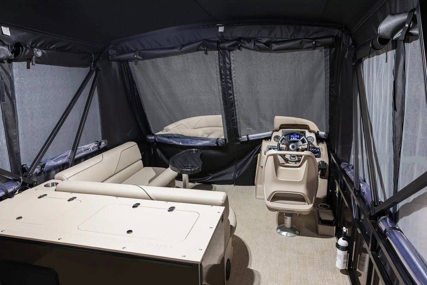 Cadet II Rotocast Helmstand (except ELW) Dual Cadet Rotocast helmstands w/twin windscreens(ELW) Tach, Volt, Fuel Gauges 12-Volt power point Bronze sound package: Fusion RA-60 radio, (4) Fusion EL speakers & grills Mechanical tilt steering (except CCF) SeaStar hydraulic tilt steering (CCF) Erie steering wheel Removeable windshield (except ELW) Courtesy light on helmstand