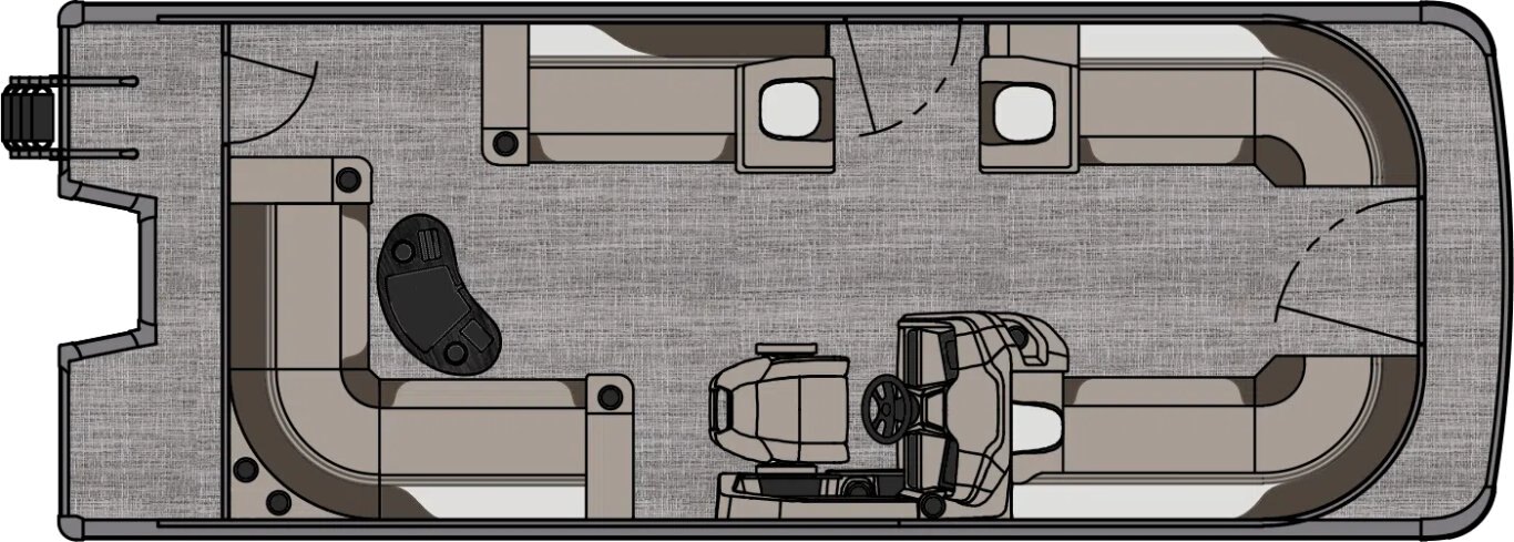 (2) 25” diameter pontoons Sport Performance triple 25” pontoons w/ 4 high performance lifting fins, ski tow bar & aluminum waveshield (ELW, VRBW) 3” rub rail with black vinyl insert Deck corner impact protection – aluminum Tapered front deck Extended rear deck Pontoon double full risers (4) stainless U-bolt & cleat combo