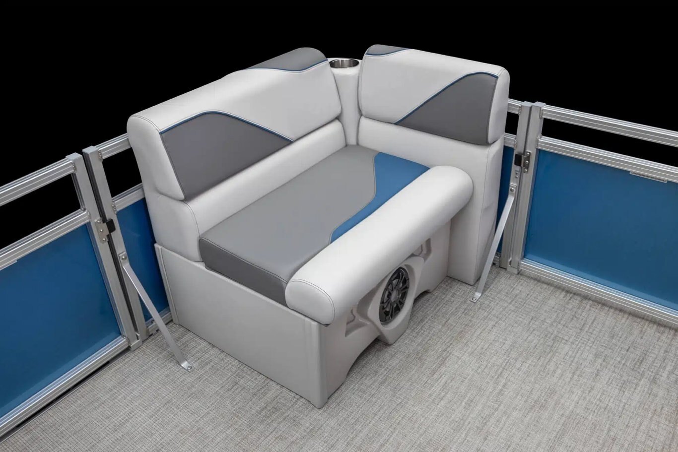 Sport low back driver’s chair Chair adjustment slider, front, back, rotate 1500 Series furniture with Leon seat vinyl & heat stamp accents Suspension seating Lounge arms with storage (based on floorplans) Small built-in trash can (where possible) Color-matched seat frame cladding Lifetime aluminum seat frames with flow-through ventilation Full Riptide vinyl flooring Stainless steel cup holders Greywood small kidney thermoform table USB charging port Vinyl non-skid strips for entry gates