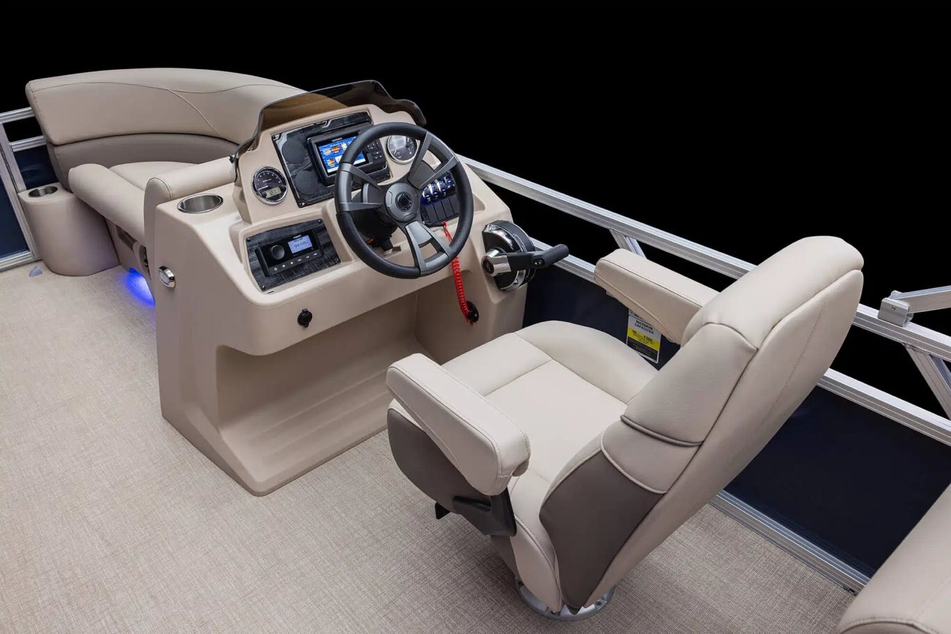 Cadet II Rotocast Helmstand Tach, Volt, Fuel Gauges 12-Volt power point Bronze sound package: Fusion RA-60 radio, (4) Fusion EL speakers & grills Mechanical tilt steering Black soft-grip steering wheel Removeable windshield Courtesy light on helmstand