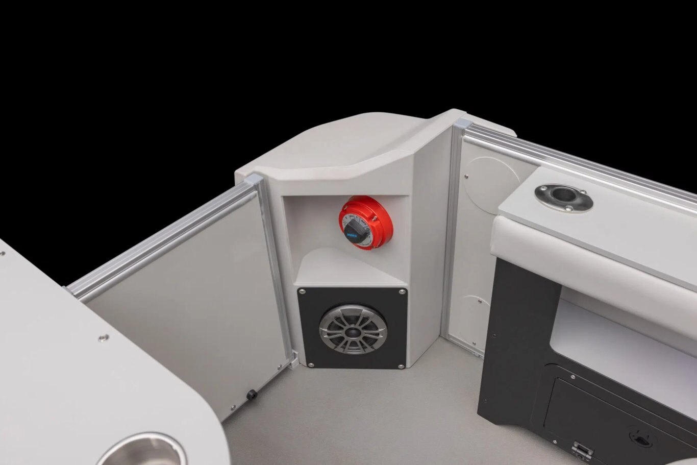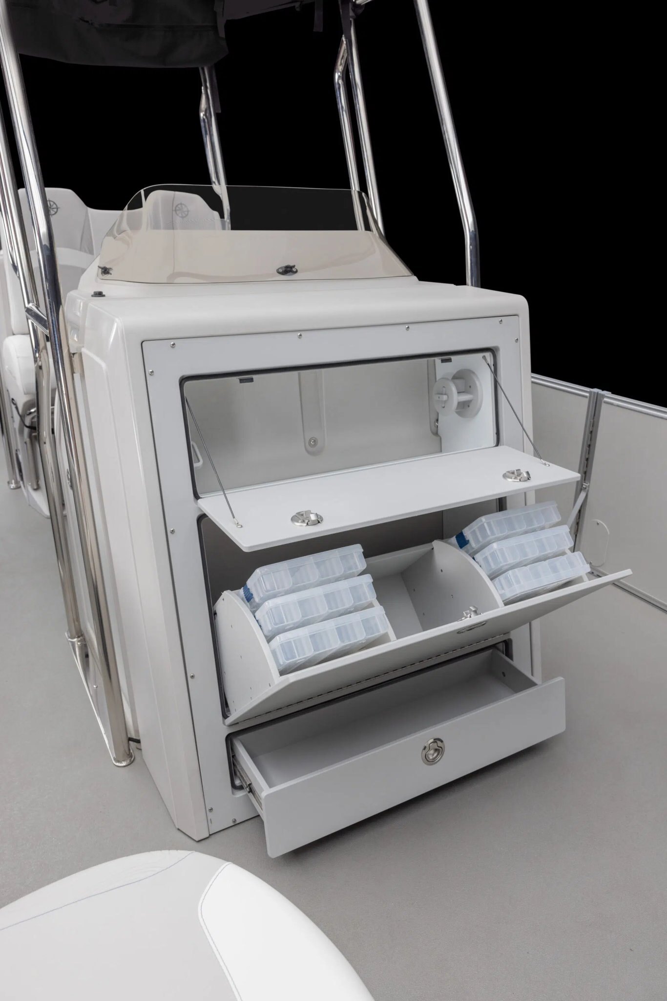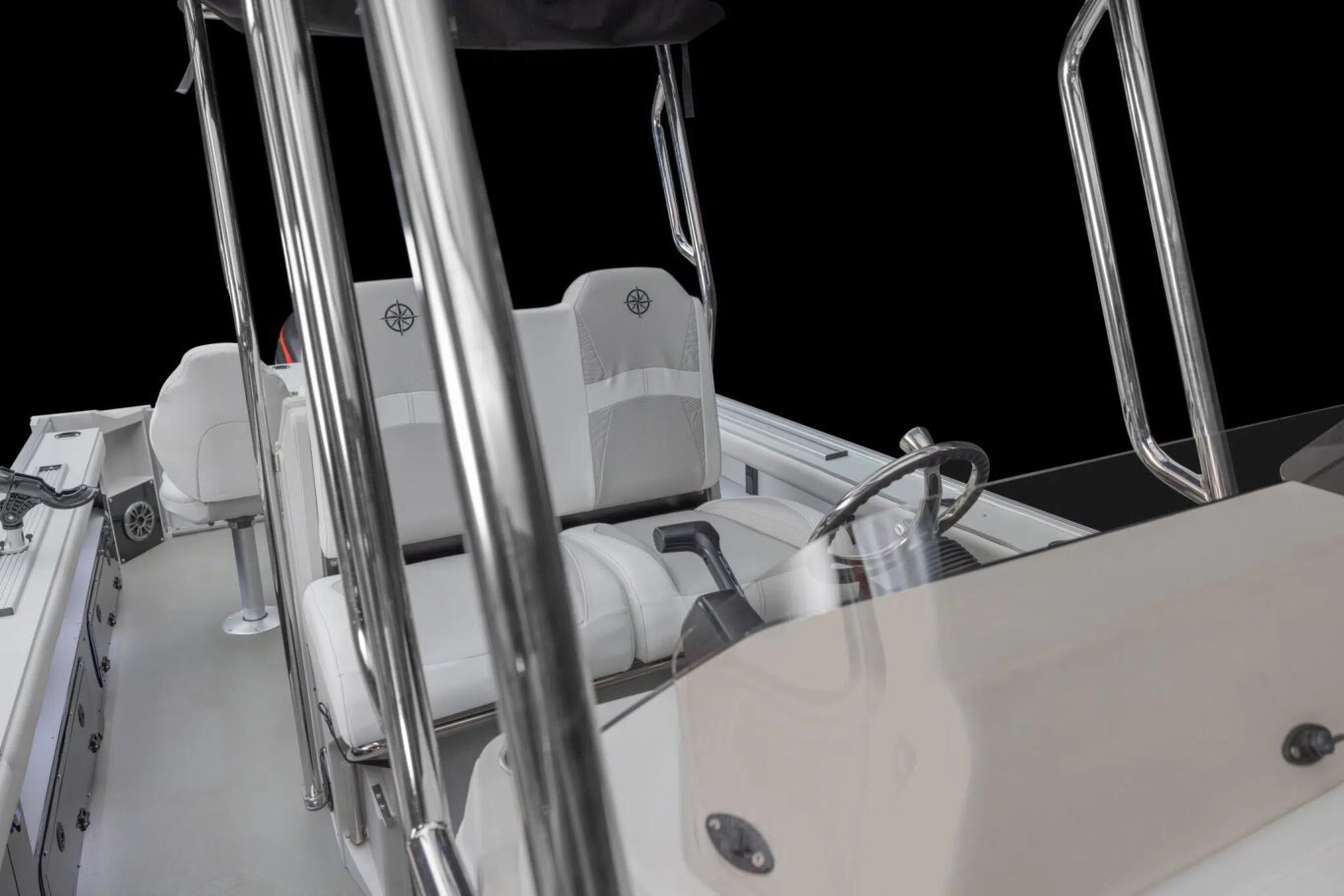 - Rear fishing center with rod holders & recirculating livewell