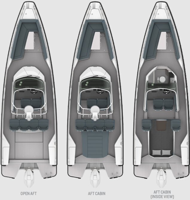 | We want to provide you an extensively customizable and user-friendly boat that can match you in your everyday needs all year around and for all your adventures. The configuration you choose will define the final layout of your boat. Below is a few examples of exterior and interior layouts available. |