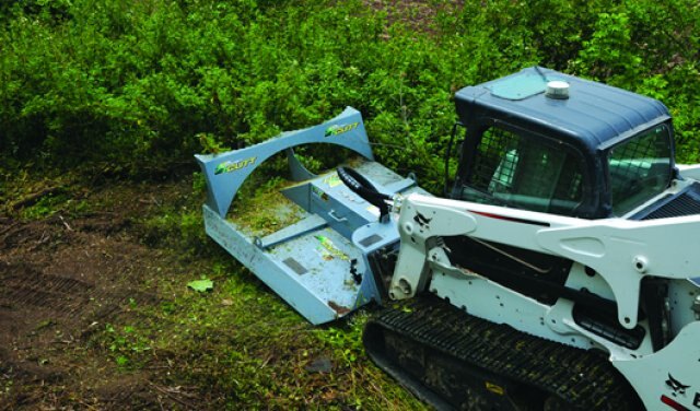 Standard on the CF560 and CF572 Brush Cutt models the Brush Bar helps to funnel brush under the Brush Cutt to the waiting blades. The double arch design of the push bar works to pull the taller heavier brush to the hardened blades making quick work of woody brush and saplings. The aggressive height and reach of the push bar provides increased control against taller, stubborn saplings, while the aggressive teeth hold the brush while the blades chew it up from below.