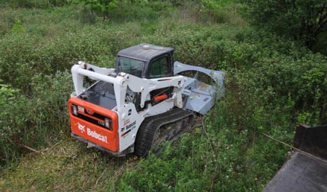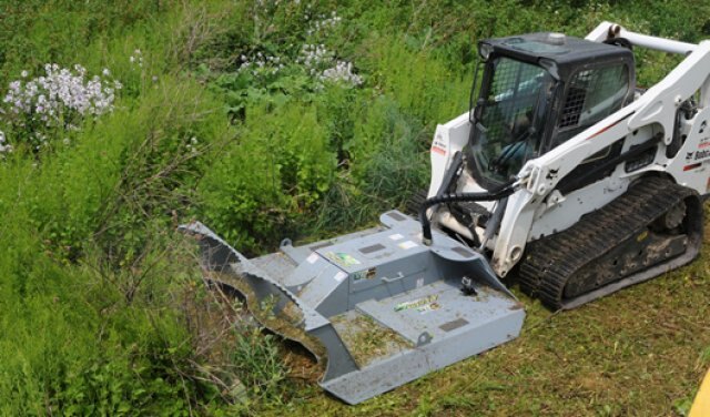 Standard on the CF560 and CF572 Brush Cutt models the Brush Bar helps to funnel brush under the Brush Cutt to the waiting blades. The double arch design of the push bar works to pull the taller heavier brush to the hardened blades making quick work of woody brush and saplings. The aggressive height and reach of the push bar provides increased control against taller, stubborn saplings, while the aggressive teeth hold the brush while the blades chew it up from below.