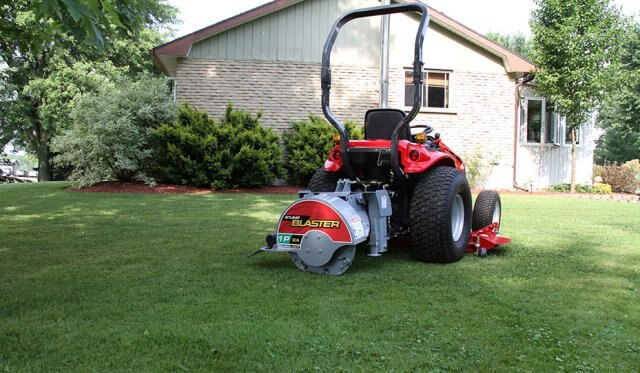 The Stump Blaster’s carbide teeth extend a full 1-¼ inches from the rotor. This prevents chips and mulch from getting plugged. More chip clearing produces smoother operation and reduces heat build-up that can damage the rotor and cause premature tooth failure. |