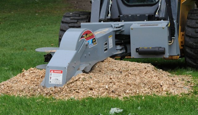 The Stump Blaster’s carbide teeth extend a full 1-¼ inches from the rotor. This prevents chips and mulch from getting plugged. More chip clearing produces smoother operation and reduces heat build-up that can damage the rotor and cause premature tooth failure. |
