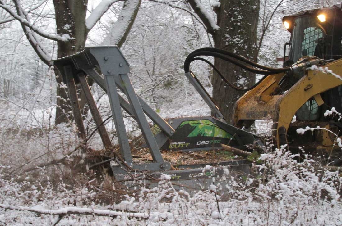 Heavy Duty Pusher Bar With extra bracing to help control the large brush material, the CSC 760 model will bend taller brush and destroy it. Bar can be removed for smaller skid steers. |
