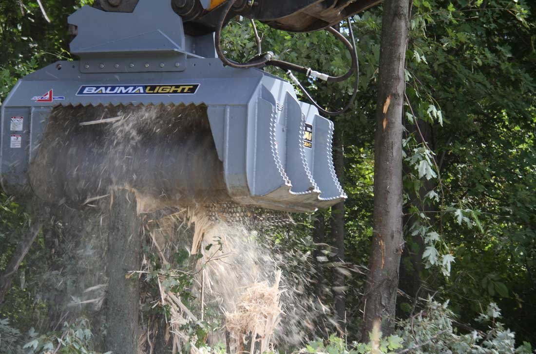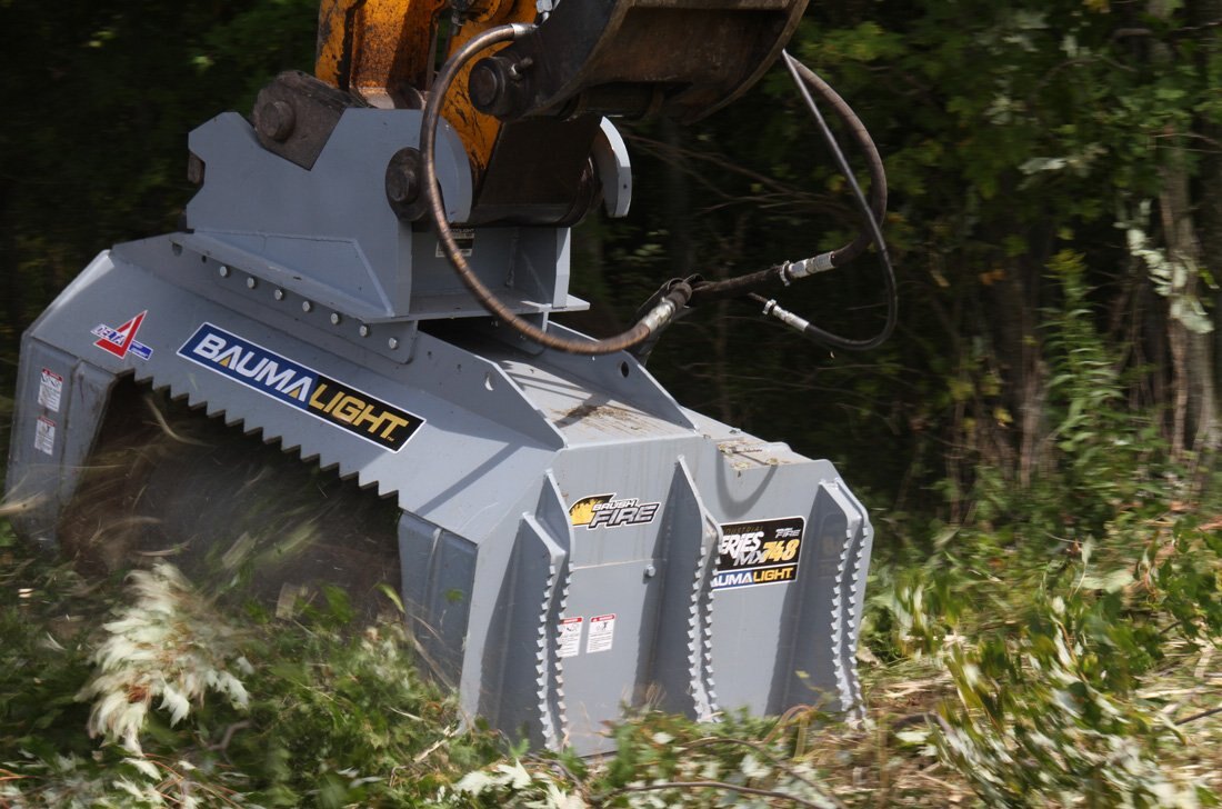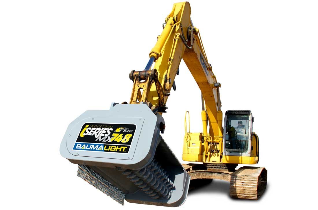 iMX748 Fixed Tooth Mulcher for Excavator, 18-25 Ton The 700 series Baumalight Brush Fire brush mulchers will efficiently mulch heavy brush and trees and are designed for contractors, rental and any other heavy duty mulching and land clearing. The 700 Series teeth are available in either Ripper or Planer style. The carbide Ripper tooth is the good general use tooth, their v-shaped design shreds through brush unforgivingly and makes them less vulnerable in areas plagued by rocks and debris. The 700 Series Planer style tooth provides the most efficient cutting by smoothly chipping away at the brush. It’s flat profile however makes it vulnerable to shattering on impact with rocks and other debris. See our brush cutting size chart to see how much this excavator mounted forestry mulcher can tear up according to your hydraulic flow. With the build in control and precision of the excavator, mulching around objects is not a problem, whether it’s in a ditch or overhead. |