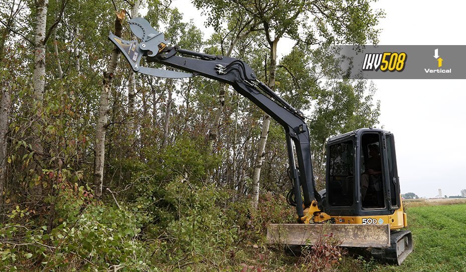 The original IXV vertical Incisor tree shear models will give you the ability to shear large hanging limbs and branches. These vertical cutting Incisor models are versatile tools that can also cut and maneuver large limbs on the ground. The bucket-linkage Tree Shear directly connects in place of the bucket and is activated by the bucket cylinder and linkages. No additional hydraulics are necessary to achieve the maximum force required to cut and shear limbs. |