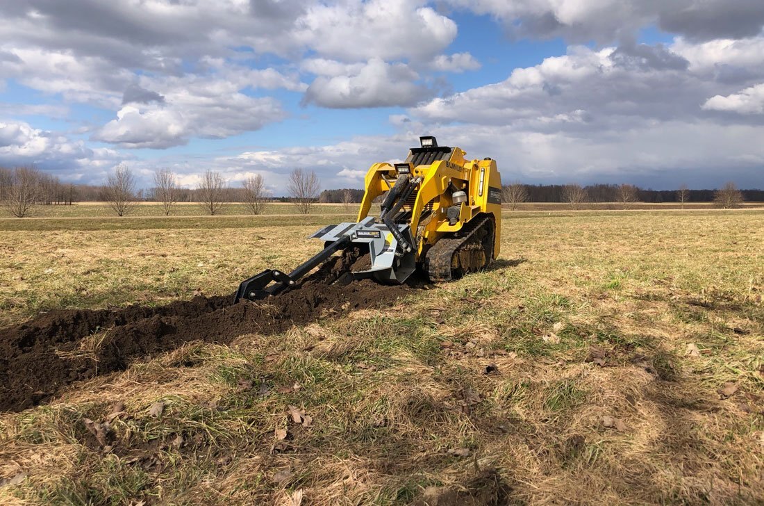 BaumaLight TRL620D Mini Track LoaderTRL620D unit slightly modified to adapt a Wallenstein mini skidsteer backhoe in use by Martin Contracting in Parry Sound Ontario