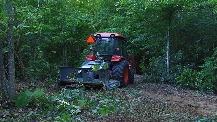 4 blades come standard on the CP560 tractor mount 60” rotary brush cutter. The Brush Bar helps to funnel brush under the Rotary Brush Cutter to the waiting blades. The double arch design of the push bar works to pull the taller, heavier brush to the hardened blades, making quick work of woody brush and saplings. If you have a 40 to 65 Hp tractor then adding a 3-point hitch rotary brush cutter attachment will help you maintain fence lines, improve pasture land as well as lane and road side weed control rough cut grass cutting.