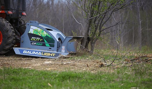 Chain Curtain A heavy-duty chain curtain reduces discharge of debris. Unlike traditional chain curtains, Baumalight’s Rotary Brush Cutter uses a curtain rod setup that is free of welds. This setup allows the chain to absorb the impacts and places less strain on the welded link for longer curtain life. |