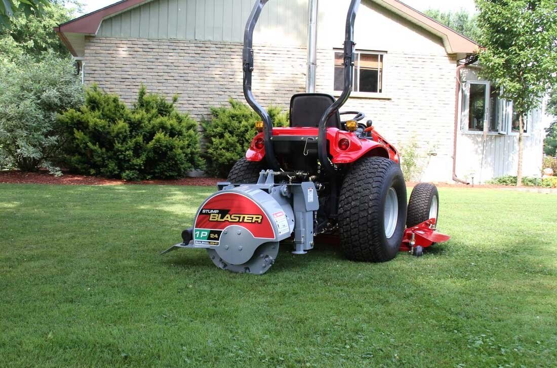 Before using the 1P24 Stump Grinder, you must first measure your compact tractor to see if you require our D005735 Extension kit
