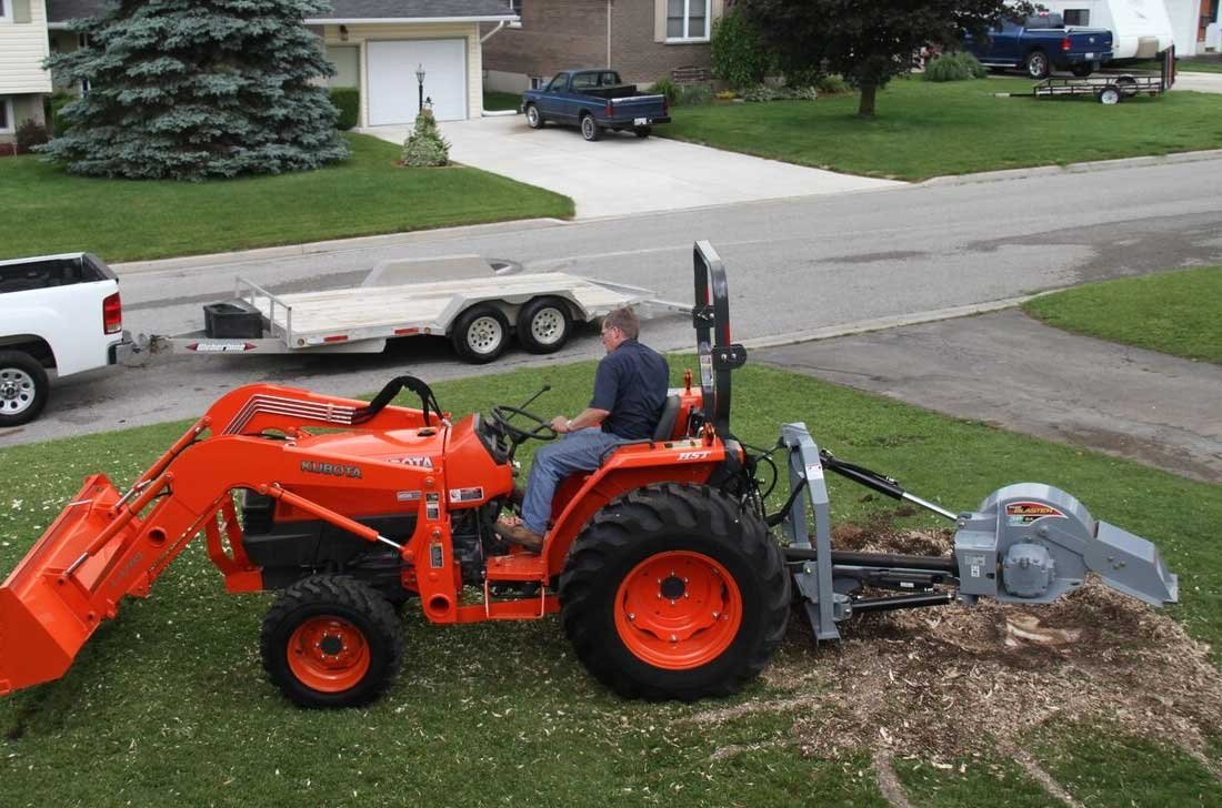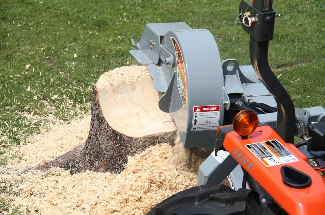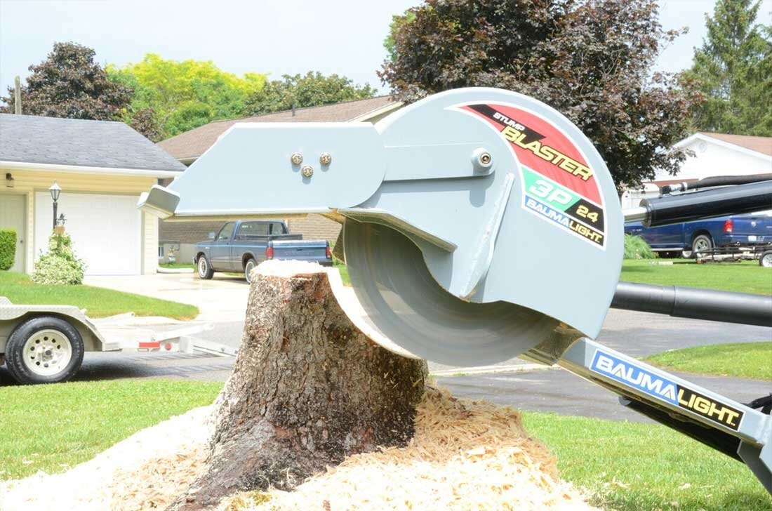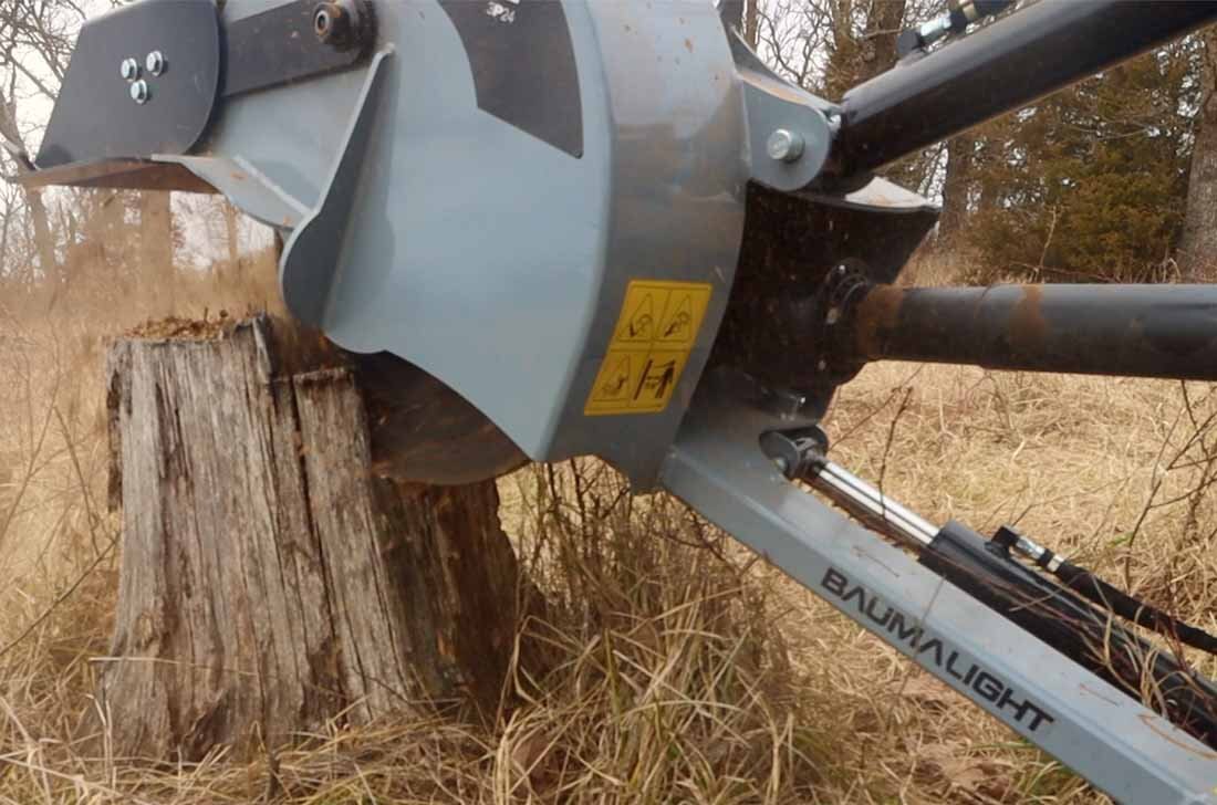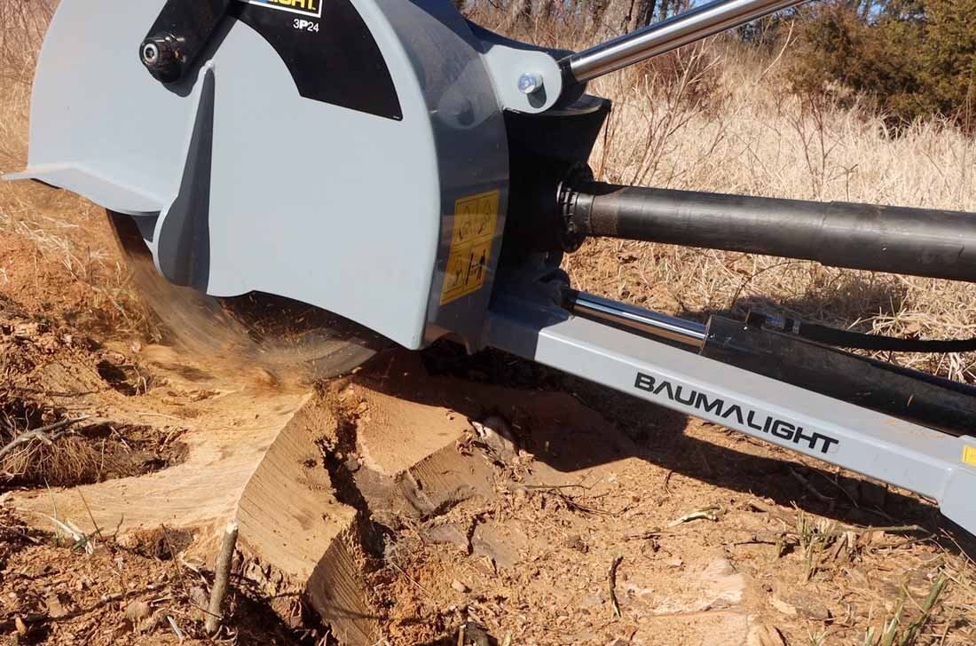 The 3P24 PTO stump grinder is designed for tractors equipped with a 30–50 horse power motor allowing you to grind into stumps with a 24" rotor carrying 34 replaceable carbide teeth. The cutting and lifting cylinders are powered by your tractor’s hydraulic remotes. Two remote hydraulics are required, if you only have one set then we offer a S1050 valve kit to ship with the stump grinder. The heavy duty base provides a solid base for grinding, reducing stress on the tractor. The flow control lets you set the optimal grinding sweep speed for the best efficiency. This versatile PTO Stump Grinder has a cutting depth of 18" above ground and 8" below ground. With direct drive from the engine, all the way through the heavy duty gear box to the teeth, a stump grinder on the PTO of a tractor is the most efficient way to use a stump grinder for lawn care or fence row clearing.