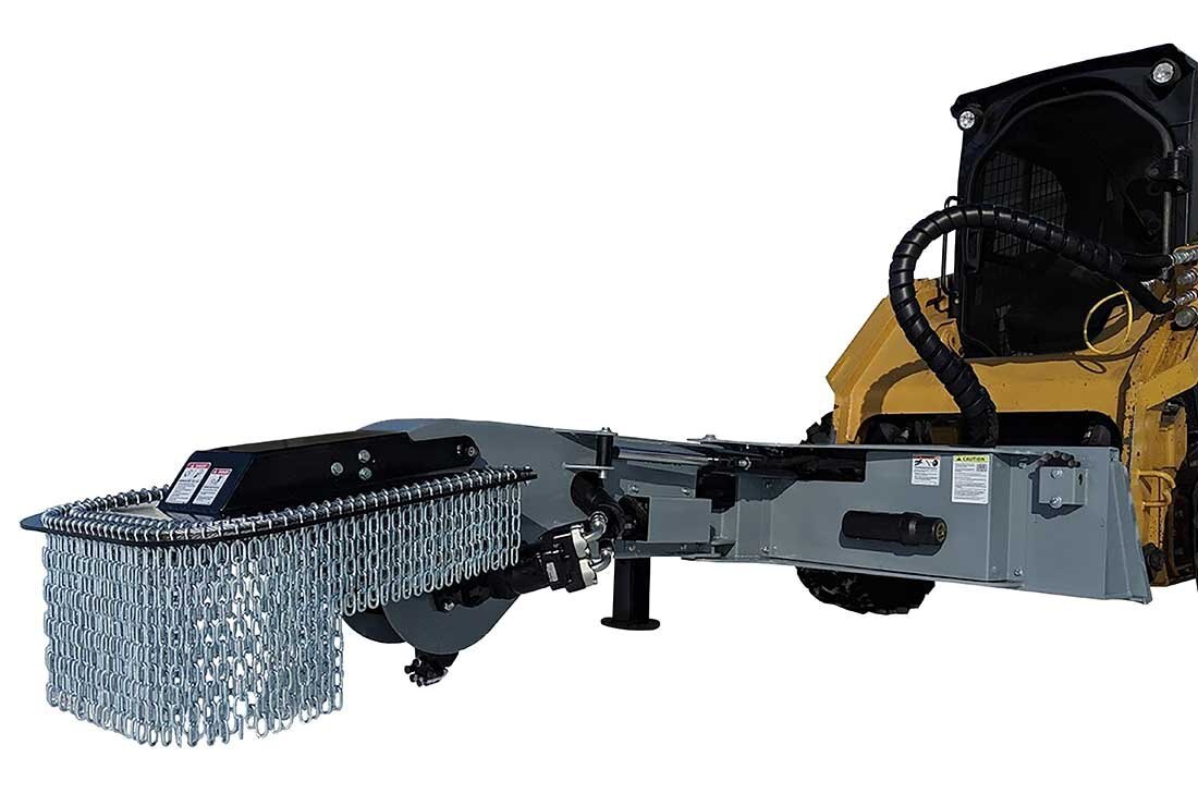 Designed with an extra-large Blast shield with dual rows of chain curtains to contain and control chips during grinding. After grinding it also helps clean up giving you the ability to back fill without switching attachments.