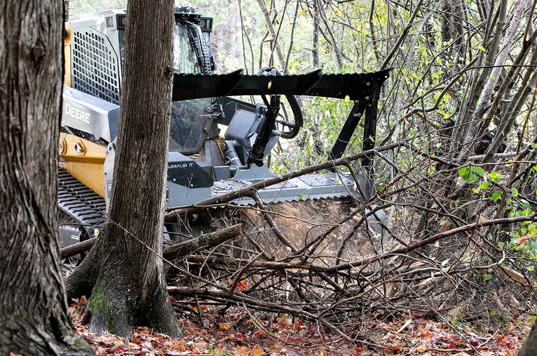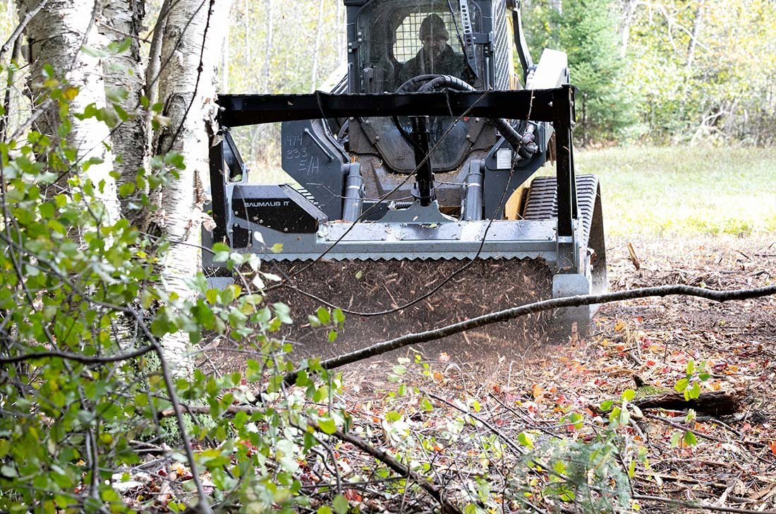 Operating a Brush Mulcher from a skid steer is probably the most comfortable way for vegetation management as your work is directly in front of you and new skidsteers are very operator comfort focused.