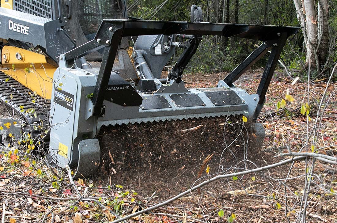 See our brush cutting size chart to see what limb size this heavy duty skidsteer mounted forestry mulcher can handle.
