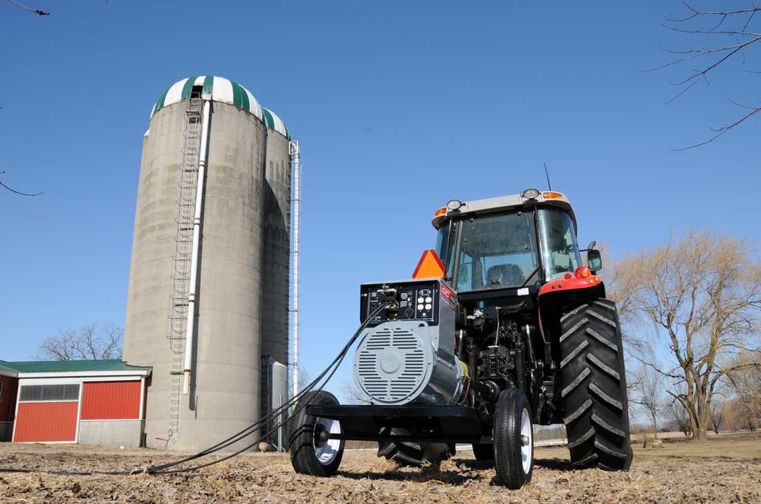 We carry QC PTO tractor-driven generator models for a Dedicated 377/600 volt three phase output, which is the most frequent voltage distribution feed in Canada and also sometimes referred to as 550 volt. At 100% load, these QC PTO models offer 27 KW to 100 KW and momentary surge from 45 to 300 KW. To determine exactly how much power you need, you can find specific information on our website by using our Power Calculator as well as our Principles Chart, which outlines which QC PTO generator model will best suit your property’s power requirements.