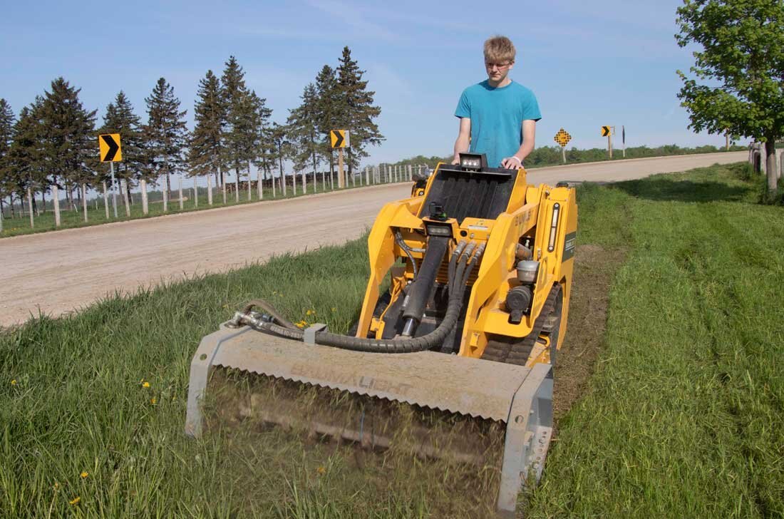Conveniently designed for Mini Skidsteers, the FMM148 will efficiently cut long, heavy grass or short diameter brush. The FMM148 is equipped with 30 F2000 flail style teeth which will swing back when hitting stones, so less damage is done to the teeth. Designed to easily maneuver around objects and access tight spaces, the FMM148 also packs some power using direct drive from the hydraulic motor. To maintain a steady, even mow height, the flail mower has an adjustable roller bar.