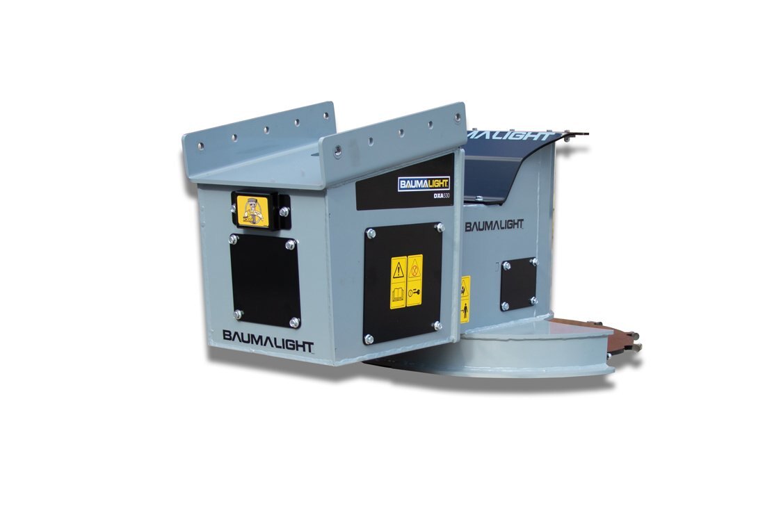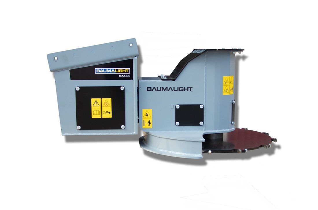 Keep your property well-maintained with a Baumalight a hydraulically-driven tree saw. With the DXA530 DropSaw model, a multi angle tree saw for excavators, the cutting head rotates 180 degrees for quick cleaning, trimming and limbing of branches as well as cutting down small trees. Featuring heavy-duty construction and replaceable carbide-tipped teeth, the DXA530 also offers a circular blade made from abrasion-resistant AR-400 steel. Be sure to visit our excavator mounting section of the website to see how we can help mounting an excavator mounted tree saw for you.