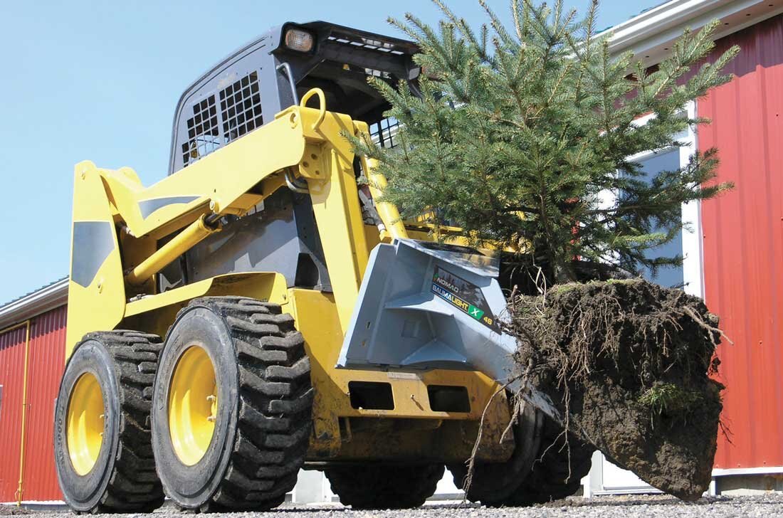 The X4S Tree Scoop is an economical way to move small trees quickly and easily. Mounted on a skidsteer, the X4S features a simple and rugged design that gives the operator an excellent view while planting. Featuring 1/4" high alloy steel that hardens with use, and a reinforced frame and sharp digging point.