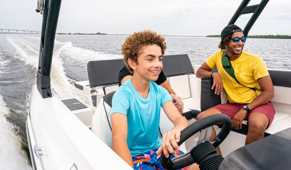 1. 3 interior floorplan options for unrivaled customization. 2. Transitional transom seating creates ample sun lounging area. 3. Exterior hull sculpting and shear lines for added style. 4. Extended LOA and deep gunnels for a safe, dry ride.