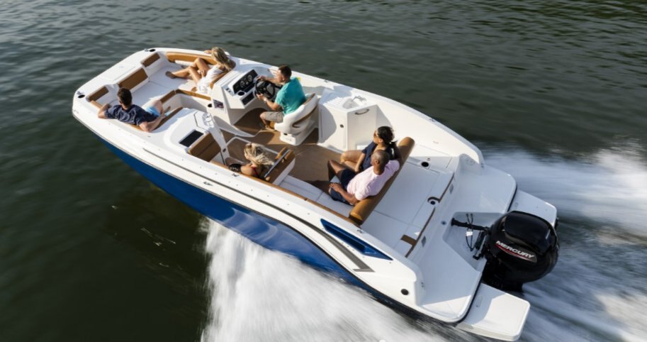 This family-friendly outboard model combines all the most popular aspects of the DX Series. The sleek exterior is complete with hull sculpting and stylish shear lines while the interior is loaded with all the comforts of home. The plush upholstery features quilting with black welt plus transitional cockpit and transom seating offer total lounging comfort while facing forward or aft. When underway the wider V-hull offers stability and a high freeboard keeps everyone safe and dry.