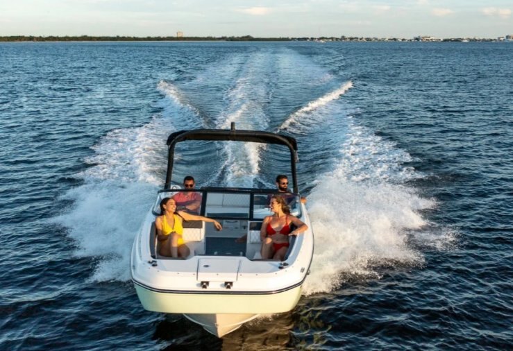 This family-friendly sterndrive model combines all the most popular aspects of the DX Series. The sleek exterior is complete with hull sculpting and stylish shear lines while the interior is loaded with all the comforts of home. The plush upholstery features quilting with black welt plus transitional cockpit and transom seating offer total lounging comfort while facing forward or aft. When underway the wider V-hull offers stability and a high freeboard keeps everyone safe and dry.