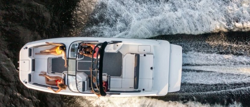 This family-friendly sterndrive model combines all the most popular aspects of the DX Series. The sleek exterior is complete with hull sculpting and stylish shear lines while the interior is loaded with all the comforts of home. The plush upholstery features quilting with black welt plus transitional cockpit and transom seating offer total lounging comfort while facing forward or aft. When underway the wider V-hull offers stability and a high freeboard keeps everyone safe and dry.