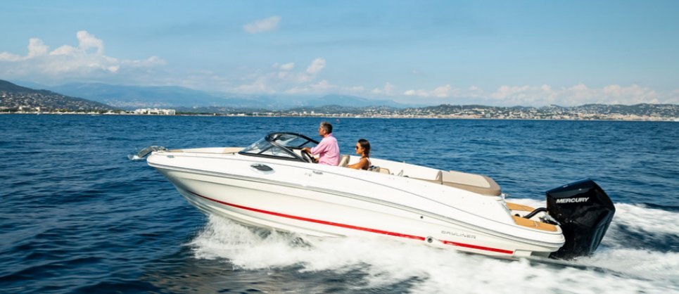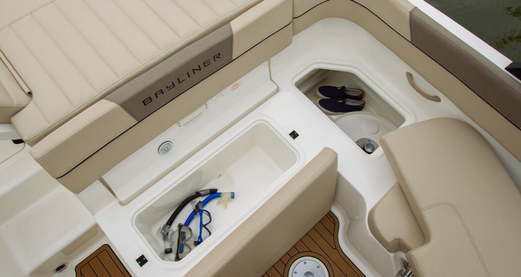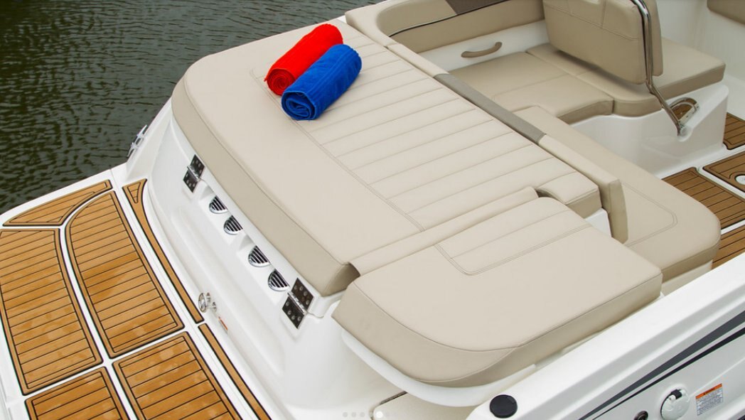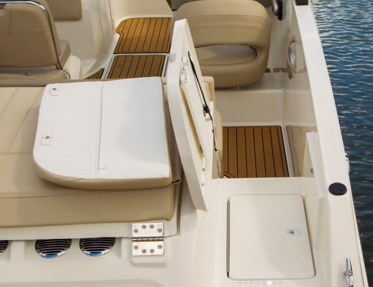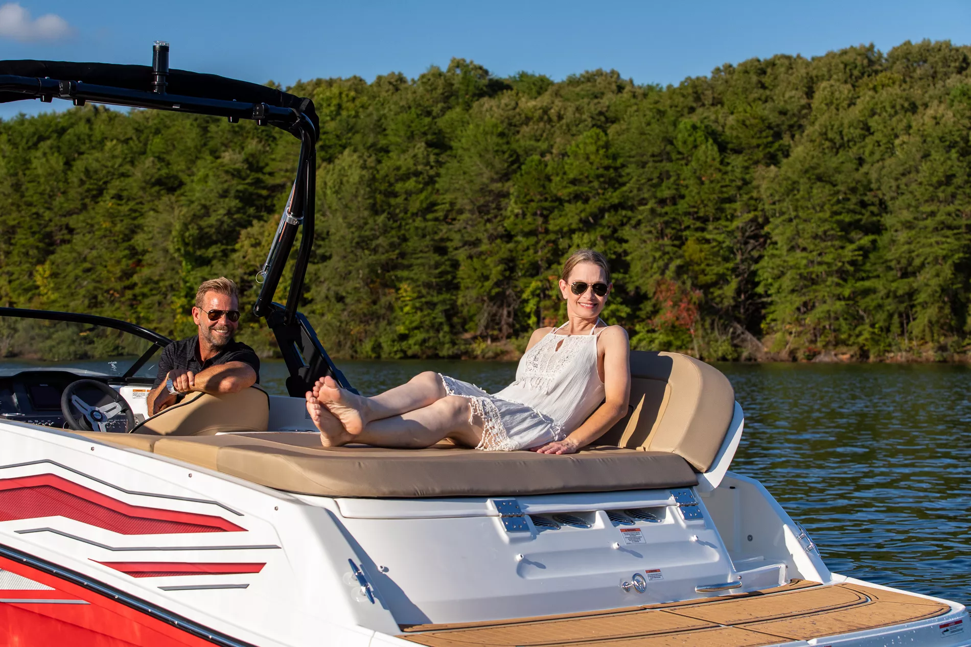 1. Available Water Sports Options let you customize the VR6 to suit your family's needs. 2. BeamForward™ design with high gunnels creates more passenger space, under-seat storage and safety 3. Enclosed changing room with optional port potty provides convenience normally found on larger boats 4. Exceptionally roomy cockpit thanks to our exclusive AftAdvantage™ design 5. Spacious cockpit seating converts to inviting U-lounge with addition of optional filler cushion 6. Standard integrated swim platform and optional platform extension are positioned further aft than comparable models adding interior space while providing the ideal staging area for water sports.