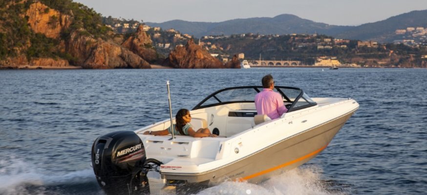 1. Available water sports or fishing options to suit your family's needs 2. BeamForward™ design with high gunnels creates more passenger space, under-seat storage and safety 3. Contoured backrests for comfortable lounging on the swim platform 4. Extra passenger seat created in bow by adding an optional bow wind block (requires bow filler cushion) 5. Optional sun pad inserts increase surface area for sunbathing comfort 6. Roomy cockpit thanks to our exclusive AftAdvantage™ design 7. Spacious bow seating converts to inviting lounge with addition of optional bow filler cushion 8. Standard sport style windshield or optional windshield with opening center panel and side wings