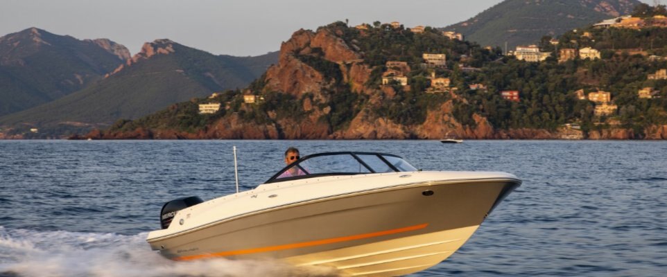 1. Available water sports or fishing options to suit your family's needs 2. BeamForward™ design with high gunnels creates more passenger space, under-seat storage and safety 3. Contoured backrests for comfortable lounging on the swim platform 4. Extra passenger seat created in bow by adding an optional bow wind block (requires bow filler cushion) 5. Optional sun pad inserts increase surface area for sunbathing comfort 6. Roomy cockpit thanks to our exclusive AftAdvantage™ design 7. Spacious bow seating converts to inviting lounge with addition of optional bow filler cushion 8. Standard sport style windshield or optional windshield with opening center panel and side wings