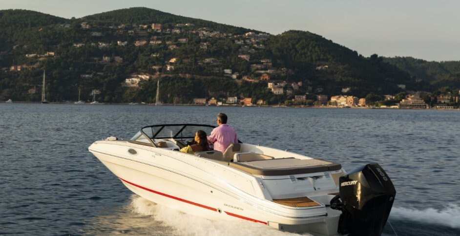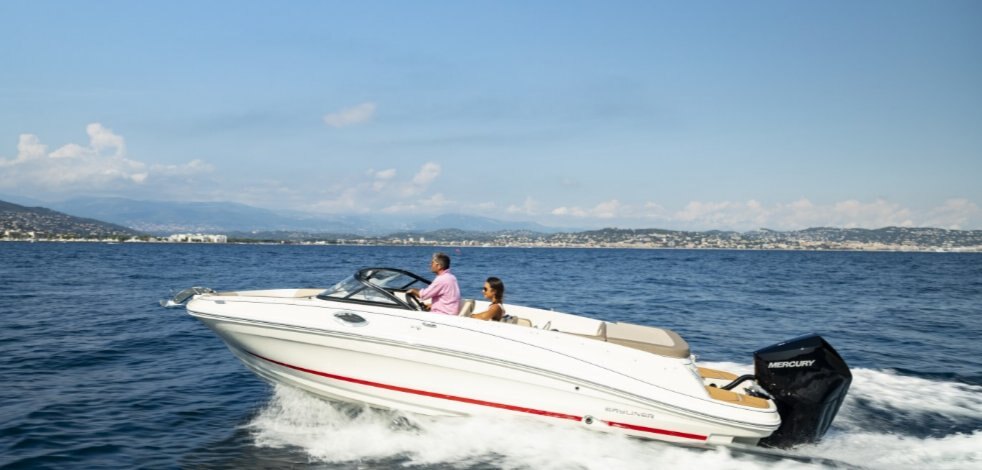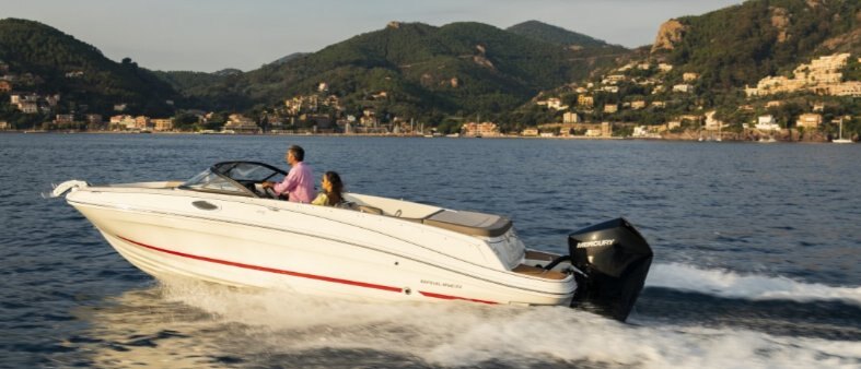 1. Available Water Sports or Fishing Options let you customize the VR6 to suit your family's needs. 2. BeamForward™ design with high gunnels creates more passenger space, under-seat storage and safety 3. Enclosed changing room with optional port potty provides convenience normally found on larger boats 4. Exceptionally roomy cockpit thanks to our exclusive AftAdvantage™ design 5. Spacious cockpit seating converts to inviting U-lounge with addition of optional filler cushion 6. Standard integrated swim platform and optional platform extension are positioned further aft than comparable models adding interior space while providing the ideal staging area for water sports.